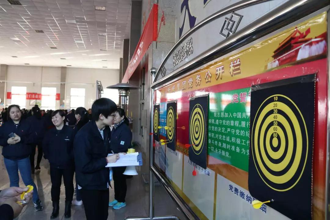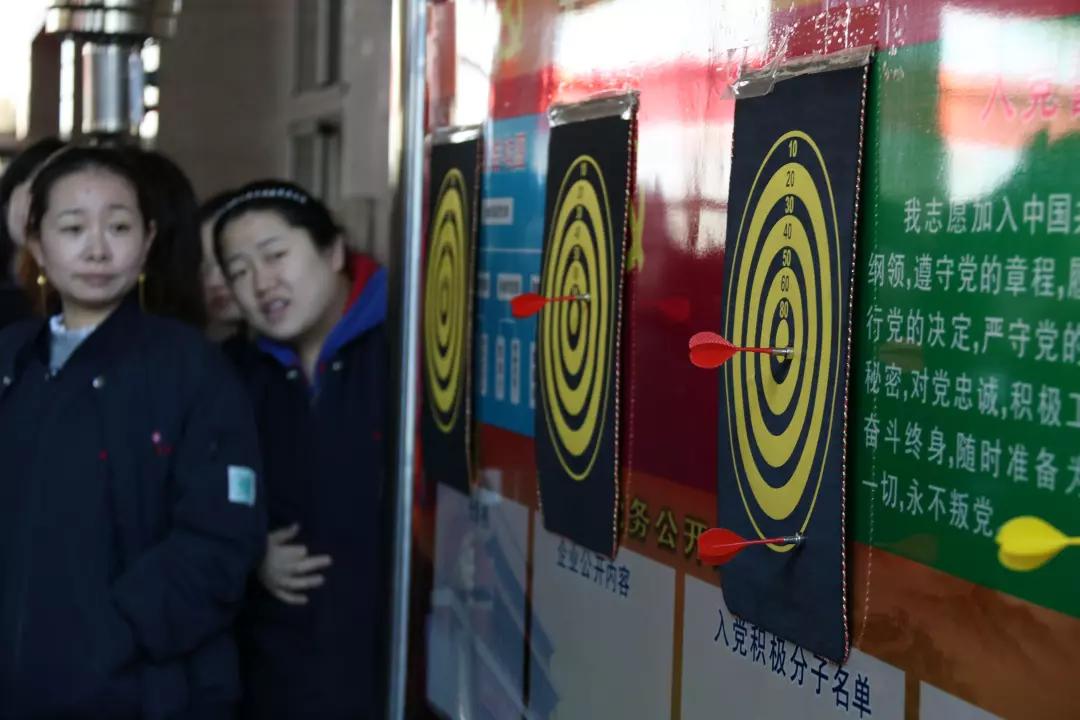 另一邊的投飛鏢比賽也進(jìn)行的如火如荼。幸運(yùn)投中10環(huán)的女職工喜上眉梢,圍觀的職工也大聲歡呼。