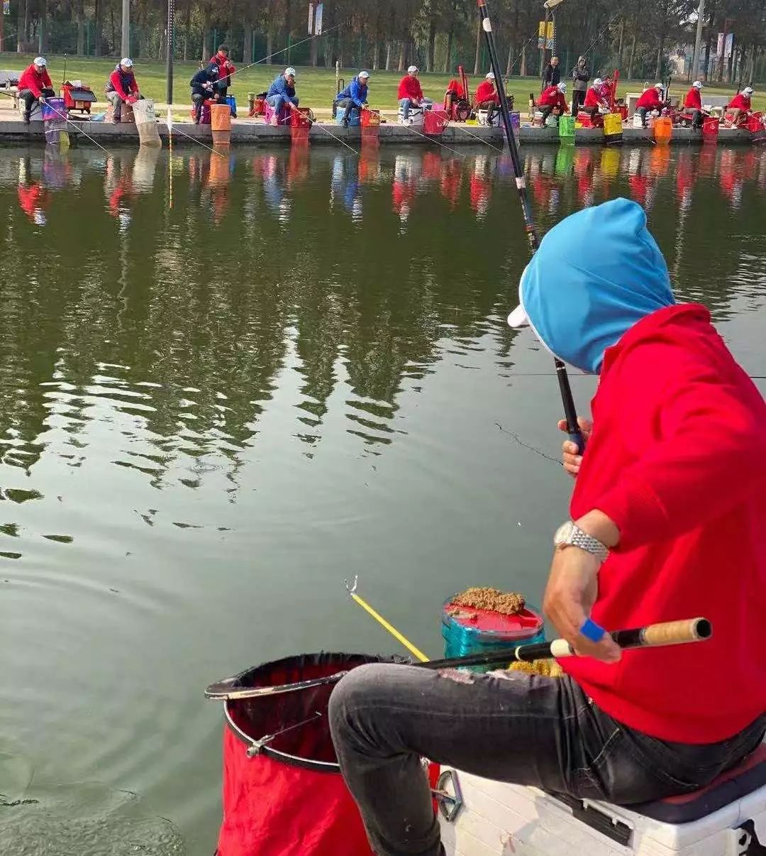 參賽選手們難耐內(nèi)心激動,大家意氣風發(fā),對比賽充滿了信心。按照抽簽選號確定的釣區(qū)釣位,大家在工作人員的引導(dǎo)下,有序進入賽場。