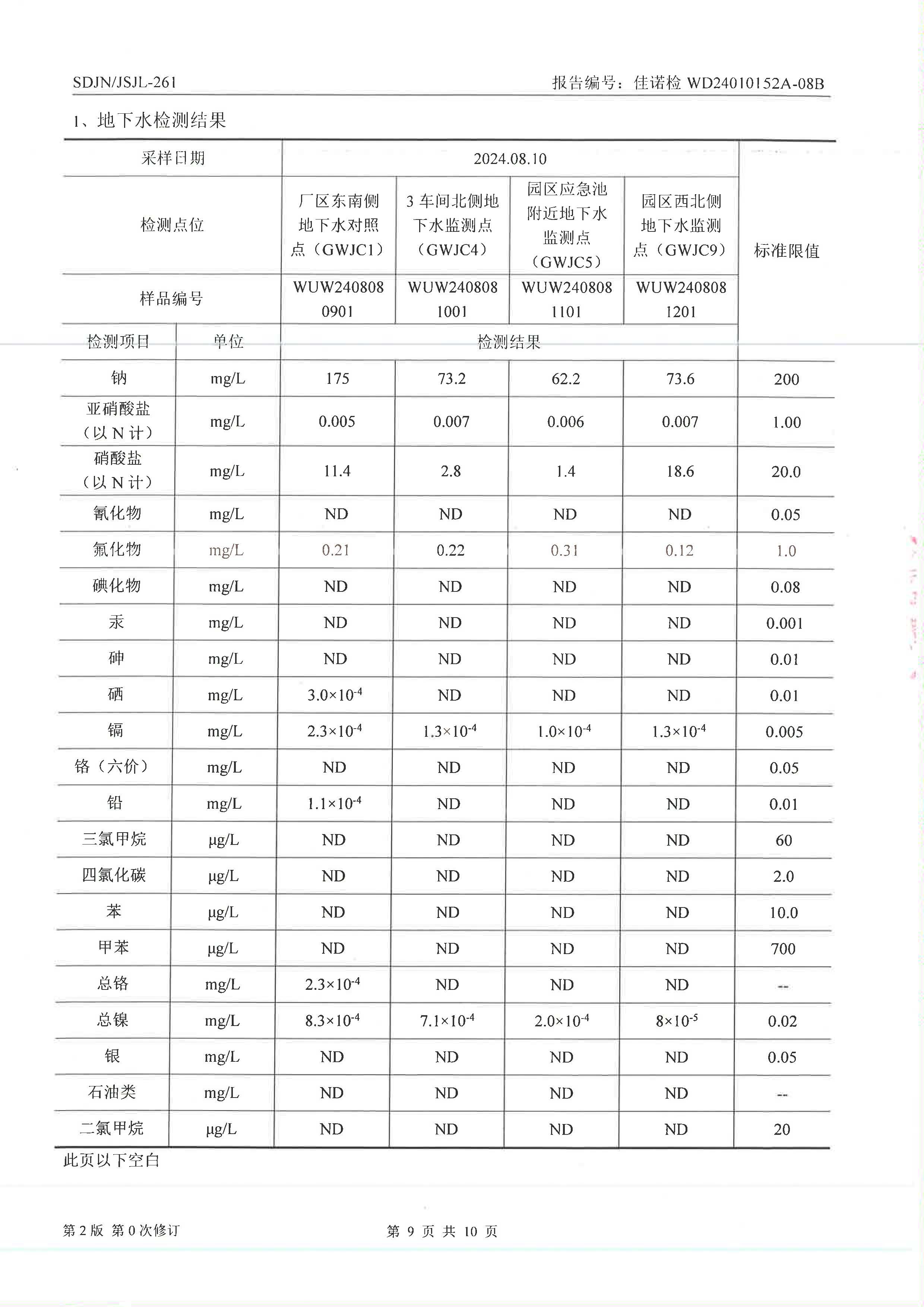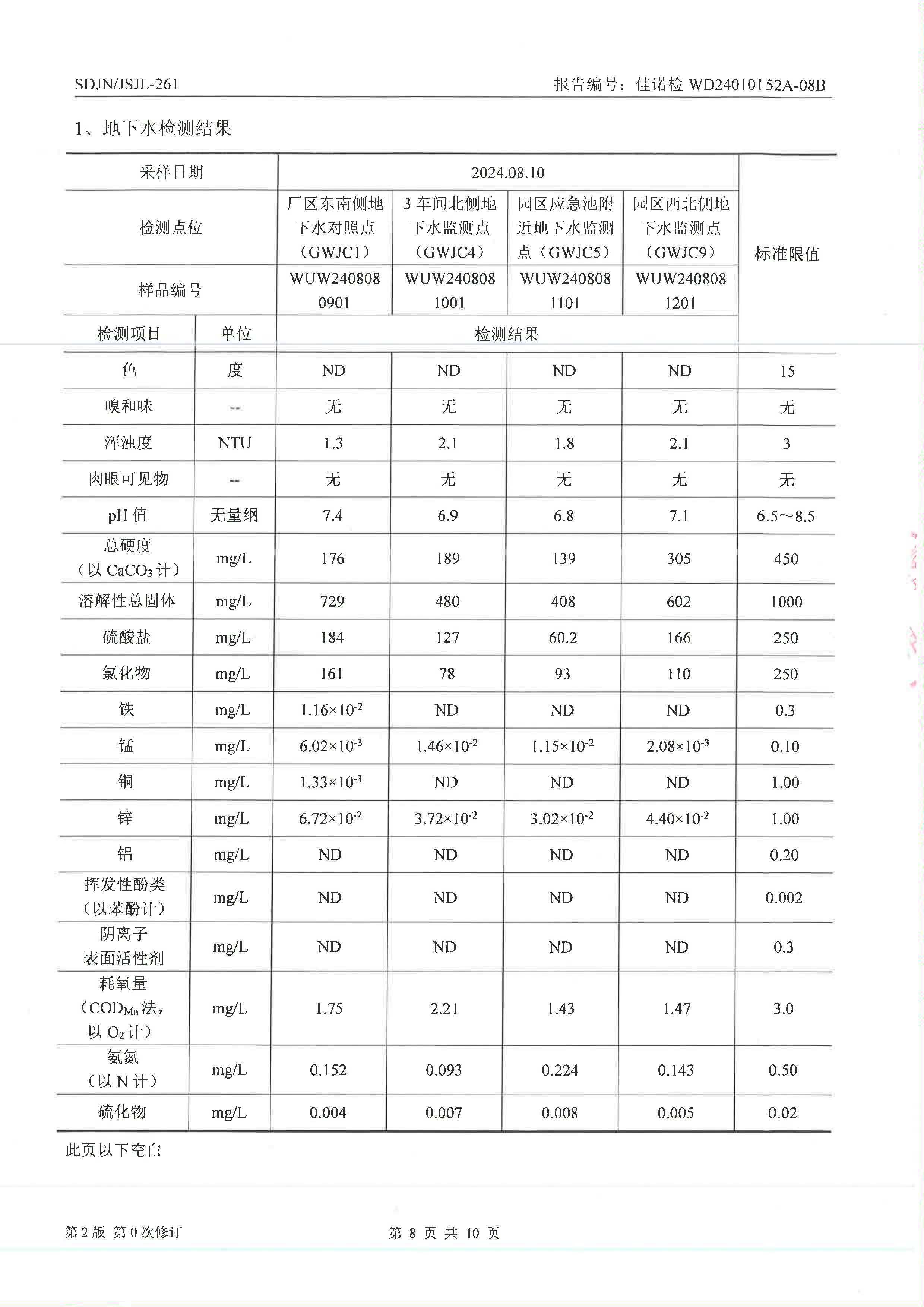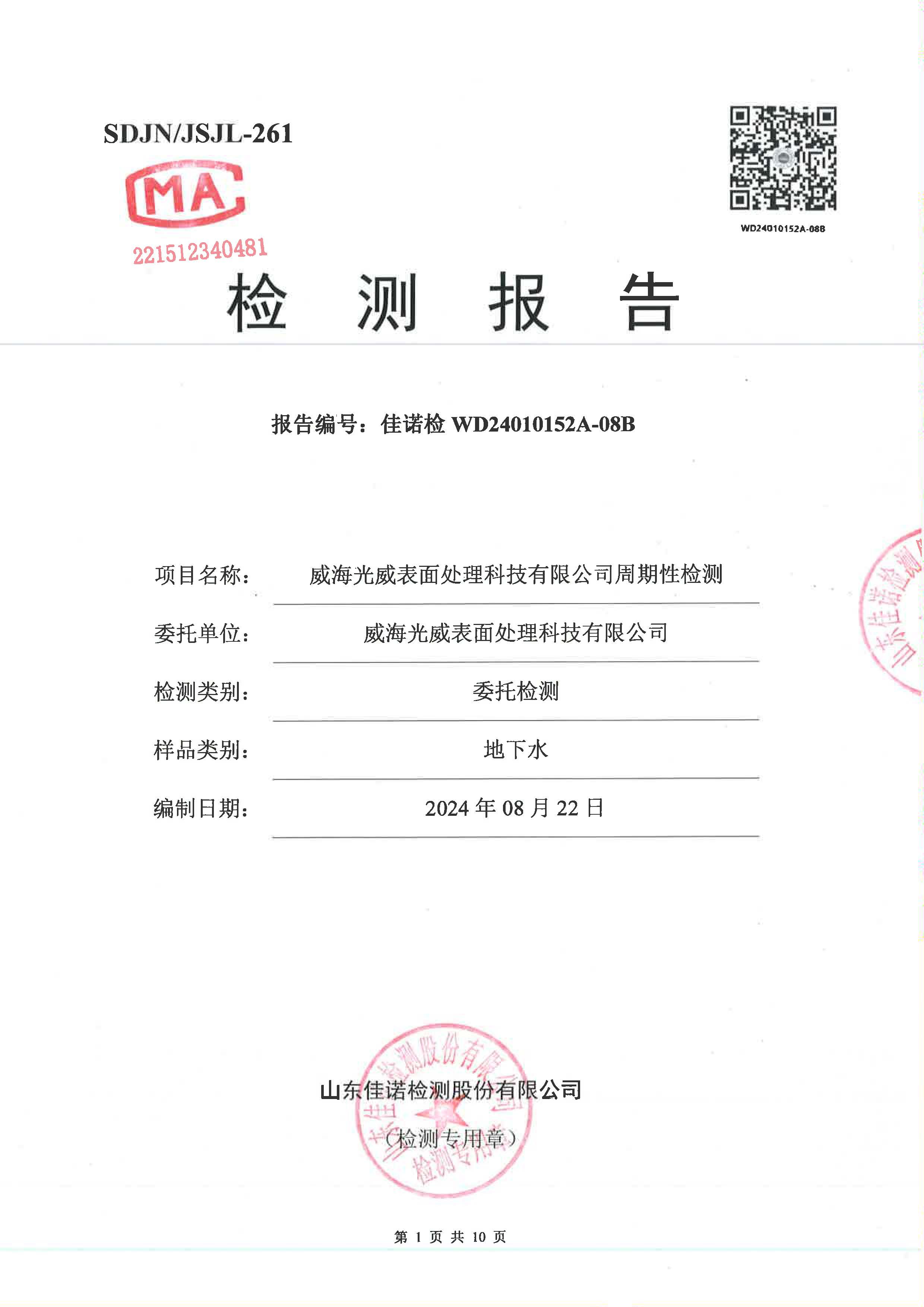 威海光威表面處理科技有限公司周期性檢測(cè)地下水