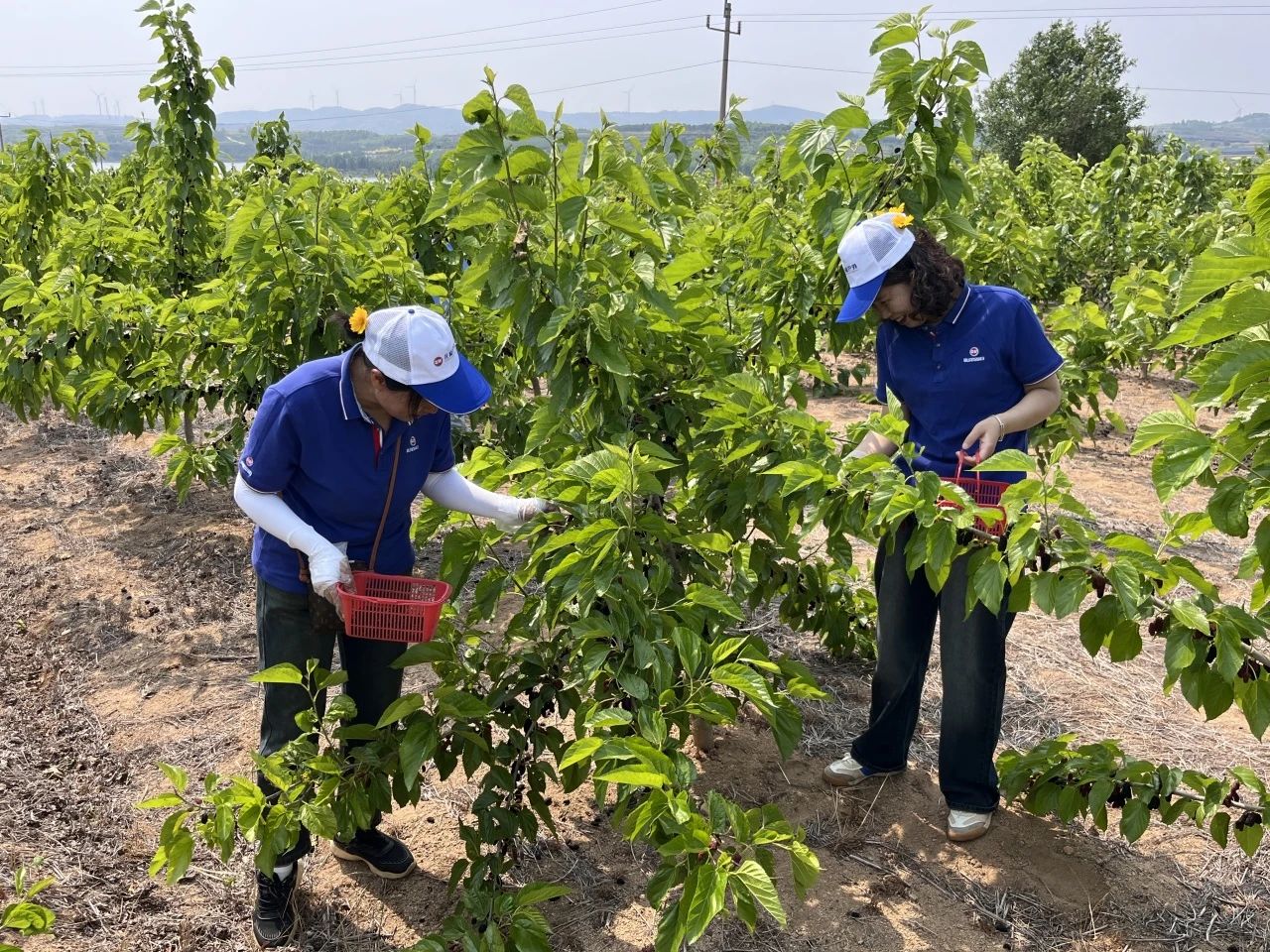 大家化身“采果小能手”,親手采摘桑葚,那酸甜可口的滋味,就像團隊的氛圍一樣,溫馨又甜蜜。